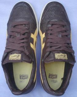 Asics Tiger น้ำตาลเข้มแถบเหลืองพื้นยางดิบเบอร์ 42.5