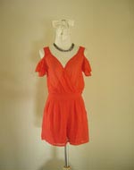จัมพ์สูทหรือชุดหมีผ้าชีฟองเว้าไหล่สีส้มแดง