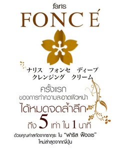 Faris Fonce’ Deep Cleansing Cream ครีมทำความสะอาดผิวหน้าฟาริส ฟ็องเซ เนื้อครีมเนียนละเอียด ผสานนาโนเทคโนโลยีให้ประสิทธิภาพในการทำความสะอาดเครื่องสำอางและสิ่งสกปรกได้ล้ำลึกสูงสุดถึง 5 เท่า พร้อมบำรุงผิวให้เนียนนุ่มชุ่มชื่น ด้วยมอยเจอร์ไรเซอร์เข้มข้น อ่อนโยนต่อรอบดวงตาและริมฝีปาก เหมาะสำหรับทุกผิวหน้า ขนาด 120 กรัม ราคาปกติ 950 บาท พิเศษเพียง 370 บาท