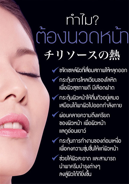- ผ่อนคลายความตึงเครียดของผิวหน้า เพื่อผิวหน้าแลดูอ่อนเยาว์