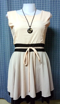 ชุดเดรสครีม มีเชือกผูกเอวน่ารักๆ D-011