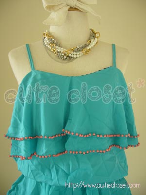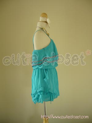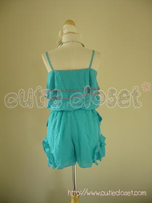 จัมพ์สูทหรือชุดหมีสายเดี่ยวตกแต่งลูกปัดสีฟ้า