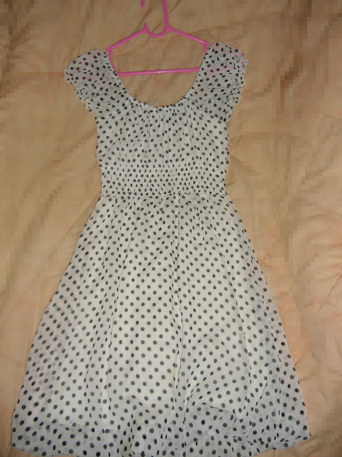 ขายชุดเดรสสั้นลายจุดสีขาวดำ