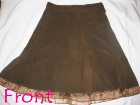 รูปที่ 4 กระโปรงสีน้ำตาลเข้ม มีระบายน่ารักๆด้านล่าง เอว 28 สะโพก 32 ความยาว 20 ราคา 150 + ค่าจัดส่ง 30 = 180 บาท