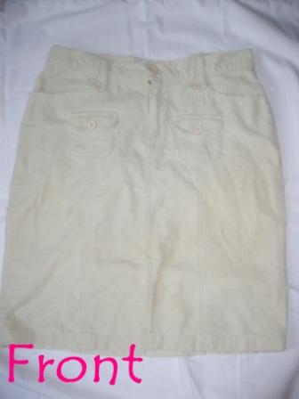 รูปที่ 5 กระโปรงผ้าลูกฟูกสีครีม เรียบร้อยน่ารัก ^^ เอว 29 สะโพก 34 ความยาว 19 ราคา 150 + ค่าจัดส่ง 30 = 180 บาท