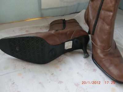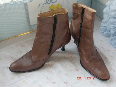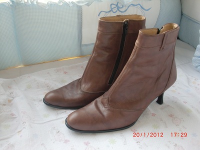 รองเท้าบู๊ทแค่ข้อสีน้ำตาลและหนังกลับสีครีมอย่างละคู่ เป็นหนังลูกวัวแท้ สภาพใหม่มากใส่ครั้งเดียวตอนไปเที่ยวเมืองนอก เป็นบู๊ทส้นสูงใส่แล้วสวยมาก ไซส์40ทั้งสองคู่ คนที่ใส่ควรไซส์39จะพอดี