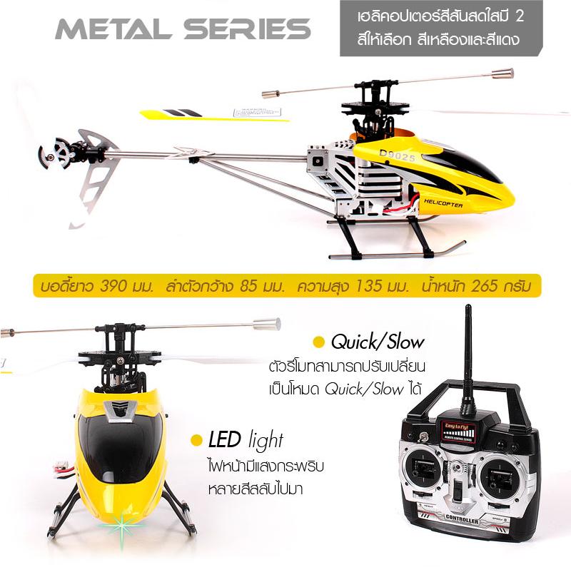 มีคลิปให้ดูที่ร้านหม่ำทอยส์!! ฮอใบพัดเดี่ยวบังคับวิทยุ D9025 คลื่นความถี่สูง 2.4 GHz (บังคับได้ไกลถึง 50 เมตร) 4 ch มีไจโร บินนิ่ง บังคับง่ายครับ