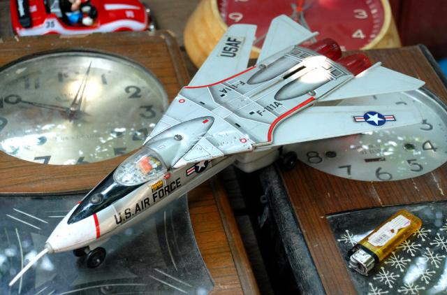 K634.เครื่องบินรบ u.s. Air force : F-111a : Made in japan ด้านบนเป็นสังกะสีส่วนด้านล่างตัวเป็นพลาสติก สามารถเล่นได้จริงไฟติดวิ่งได้ ใช้ถ่านก้อนใหญ่ ถ่ายมาให้ดูหลายมุมลองพิจารณาดูครับ ราคา 2000 บาท พร้อมส่งให้