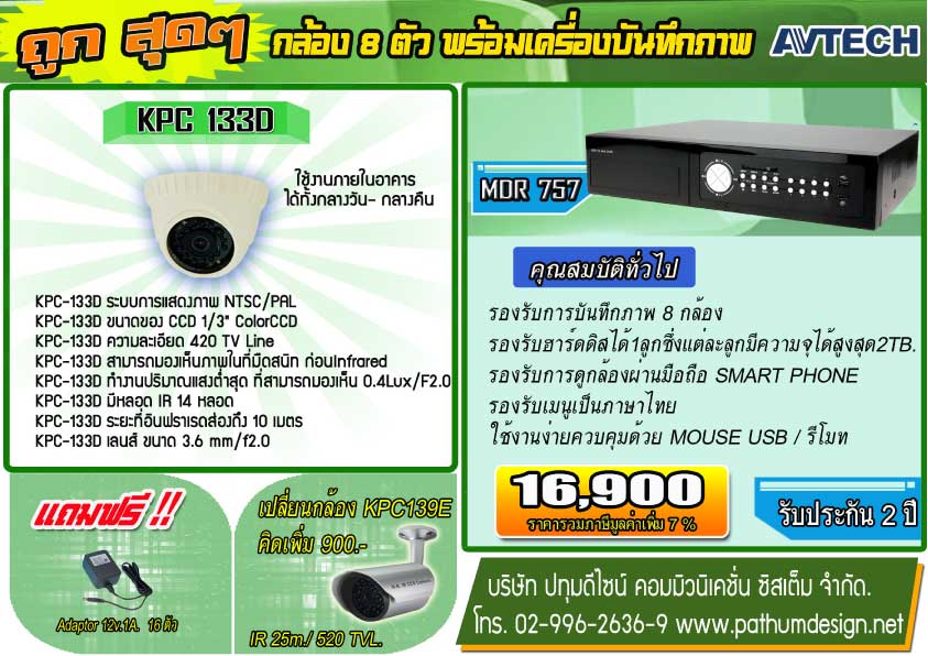 *** โปรโมชั่น 8 กล้อง AVTECH MDR757 + KPC-133ZD ราคาพิเศษ 16,900.- รับประกัน 2 ปี ***