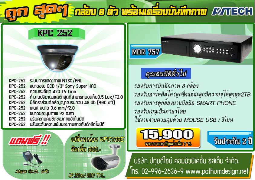 ****โปรโมชั่น 8 กล้อง AVTECH MDR757 + KPC-252 ZD ราคาพิเศษ 15,900.- รับประกัน 2 ปี****