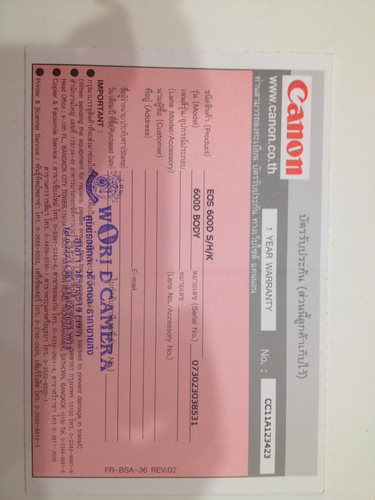 หาคนดูแล Canon 600d อดีตประกันศูนย์ + kit 18-55 mm.เหลือประกันศุนย์ 21 เดือน + Grip BG-E8 ซื้อมาเดือนกว่า ทั้งหมดกล่องครบใบรับประกันครบ