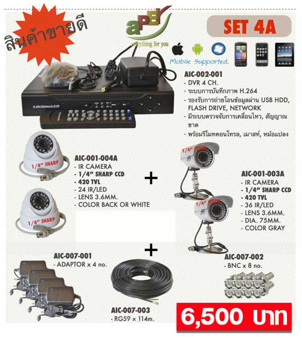 ชุดกล้อง CCTV 4ch ยกเซต ติดตั้งเองได้เลย ราคา 6,500 บาท