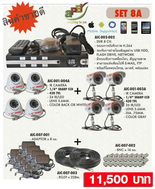 ชุดกล้อง CCTV 8ch ยกเซต ติดตั้งเองได้เลย ราคา 11,500 บาท