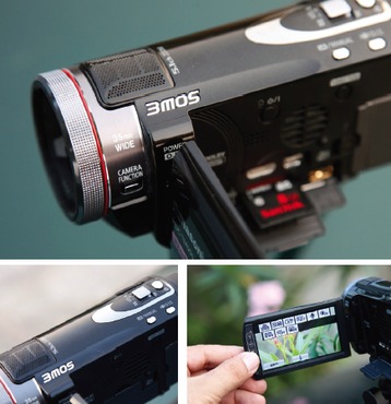 กล้องวิดีโอรุ่นใหม่ บันทึกวิดีโอคุณภาพสูง Full-HD ด้วยหน่วยความจำภายในตัวกล้อง 32 GB และเพิ่มได้ด้วยเมมโมรี่การ์ดภายนอก SDHC/SD ทำให้ตัวกล้องมีขนาดเล็กและน้ำหนักเบา พร้อมวงแหวนปรับการทำงานแบบแมนนวลหน้าเลนส์ ระบบเซ็นเซอร์ภาพแบบ 3MOS ทำให้ได้ภาพที่มีคุณภาพสูงกว่าเมื่อเทียบกับกล้องวิดีโอ Full HD ทั่วๆ ไป