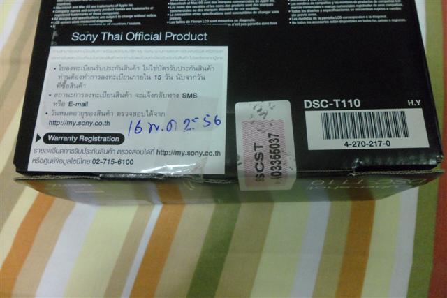 SONY DSC-T110 16 ล้านจอสัมผัส สีดำ ใหม่ยังไม่แกะกล่อง สินค้าตัดสต๊อก มีประกันศูนย์ ถึง05/2556 ลดได้นิดหน่อย................. รายละเอียด...................................... http://www.digital-intrend.com/index.php?lay=show&ac=cat_show_pro_detail&cid=50496&pid=226764....................................... http://www.akibkk.com/index.php?mo=28&id=484657......................... ขาย 4400 บาท ลดได้นิดหน่อย..................... สนใจติดต่อ โอ๊ด 0815951099....................... มารับเองที่บางแคครับ หรือส่งEMS ฟรี.................... ไม่รับจองนะครับ ใครมาก่อนก็มาเอาครับ..............