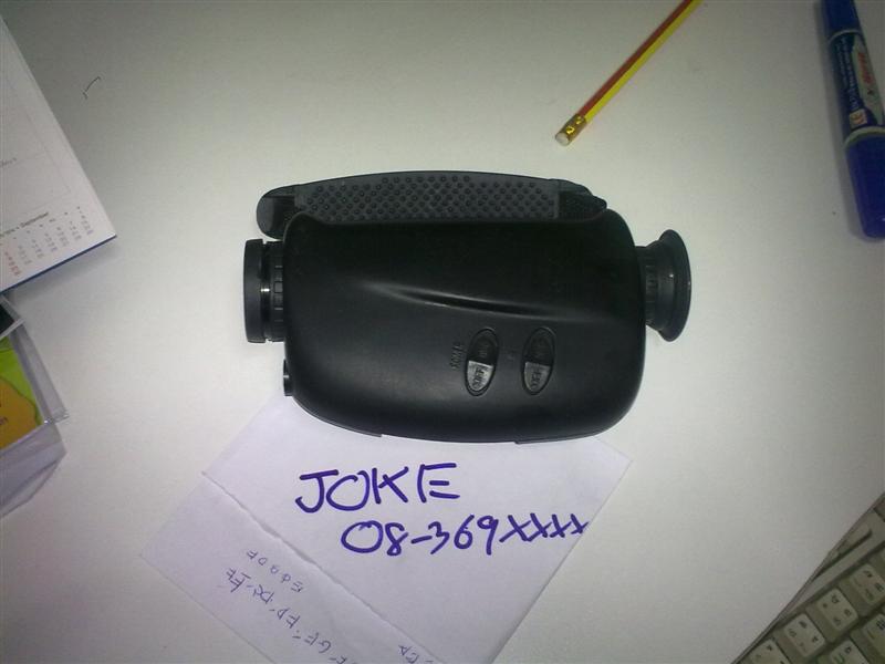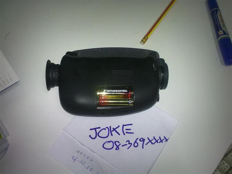 กล้องมองกลางคืน ผลิตในจีนครับ ใช้ถ่าน AAA 2 ก้อน มีอินฟาเรดในตัว ไม่มีกระเป๋าหรือ คู่มือให้นะครับ มีแต่ตัวกล้องเท่านั้น และฝาปิดแบ็ต หายแต่ถ่านไม่หล่น เอาเทปปิดทับได้ครับ รุ่นนี้ไม่กันน้ำ มีตัวเดียวครับ ขายที่ 5000 บาทรวมค่าส่งแล้ว(พกง) ติดต่อ โจ๊ก 0836930-ห้า-หก-เก้า ครับ