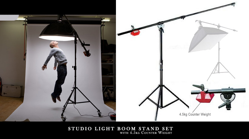 PROFESSIONAL HEAVY DUTY STUDIO LIGHT BOOM STAND LARGER BOOM LIGHTING STAND HEAVY DUTY STAND HEIGHT 180CM STAND 2 SECTION WITH 2 RISERS 40 CM , 35CM 3LEGS WITH WHEEL LEGS 25CM ARM LENGTH 265CM BALANCE WEIGHT 5KG MAIN FUNCTION 360 REGULATION 2SECTION 35 CM 30CM ขายแล้วนะค่ะ ขอบคุณค่ะ