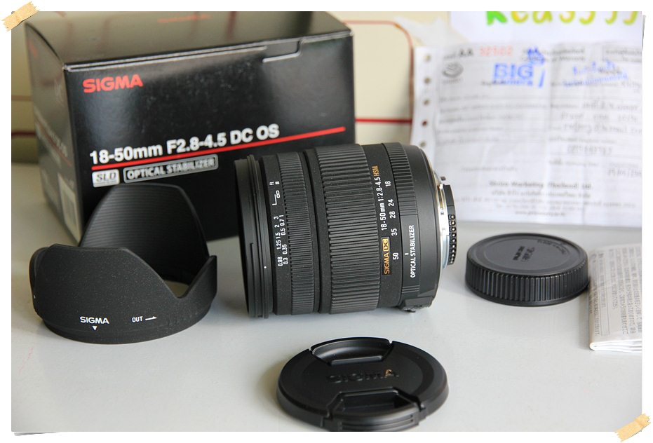 ขาย Sigma Lens 18-50 mm f2.8-4.5 DC OS HSM (for Nikon) สภาพสวย ครบยกกล่อง ประกันศูนย์ยาวๆถึง 19-02-2015 ดูรูปจริงด้านในค่ะ