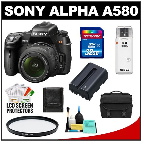 Sony Alpha DSLR-A580 16.2 MP Digital SLR Camera & 18-55mm Lens with 32GB Card + Battery + Case + UV Filter + Cleaning & Accessory Kit