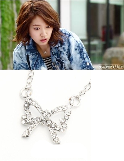 สร้อยคอจากซีรี่ย์เรื่อง HEARTSTRINGS - You fell in love with me Material : alloy (surface silver); diamond Chain length (approximately): 45 cm (including the extension of chain 5 cm) Pendants (about): 1.6 cm x 1.3 cm สนใจดูรายละเอียดที่ http://www.pakinaka.com/product/116