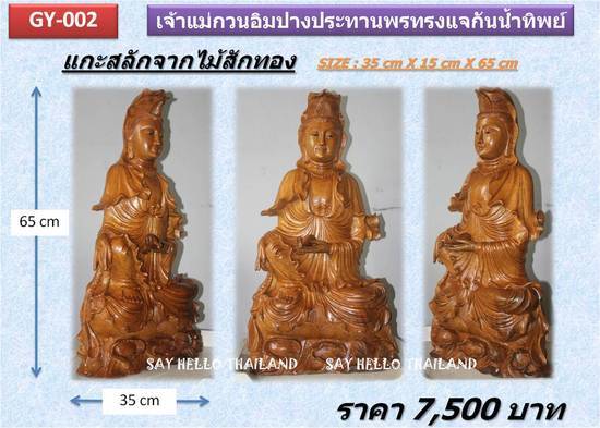 # ขายองค์เจ้าแม่กวนอิมปางประทานพรทรงแจกันน้ำทิพย์ แกะจากไม้สักทอง ((ราคาไม่แพงจ้า)) รหัสสินค้า : GY-002 SIZE : 35 cm X 15 cm X 65 cm * แกะสลักจากไม้สักทอง ราคาสินค้า : 7500 บาท
