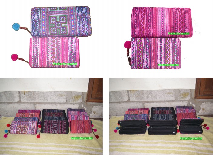 กระเป๋าผ้าใส่ธนบัตรลายผ้าปักชาวเขา