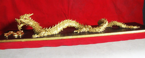 "มังกรทอง" งานปั้นจากผงไม้สัก ขนาด 25x 110 cm