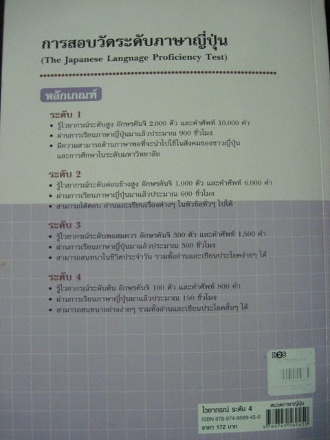 หนังสือไวยากรณ์ ระดับ 4 สำหรับเตรียมสอบวัดระดับภาษาญี่ปุ่น