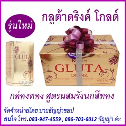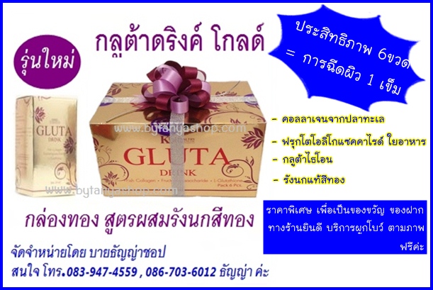 Gluta Drink กลูต้า ดริ้งค์ โกลด์ สูตรพรีเมี่ยมเพิ่มรังนกแท้สีทอง ประสิทธิภาพเทียบเท่าการฉีดผิว ปลอดภัย ไม่มีสารตกค้าง มี อย.รับรอง