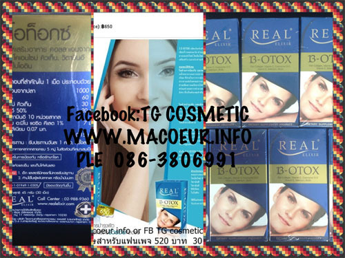 13-OTOX ผลิตภัณฑ์เสริมอาหารเพื่อการป้องกันและลบเลือนริ้วรอยก่อนวัย ด้วยสูตรเฉพาะที่มีส่วนผสมของคลอลาเจนเปปไทด์ โคเอ็มไซน์ คิวเทน และซิลีเนียม เพื่อการเสริมสร้างและประสานเส้นใยคลอลานเจนได้อย่างได้ผล คุณสมบัติพิเศษ ในด้านการป้องกัน และลดเลือนริ้วรอย : ด้วยส่วนผสมหลักคาลาเจนจากปลาทะเล โคเอ็มไซน์ คิวเท็น และซีลีเนียม ที่ช่วยในการกระตุ้นเซลล์ผิวให้เกิดการสร้างและประสานเส้นใยคลอลาเจน พร้อมด้วยวิตามินซี และอีที่ช่วยเพิ่มความแข็งแรงให้กลับโครงสร้างคลอลาเจนใต้ผิวพร้อมช่วยลดการทำลายคลาลาเจนในชั้นผิวจากอนุมูลอิสระซึ่งเป็นต้นเหตุสำคัญของการเกิดริ้วรอย ในด้านบำรุงเล็บ และเส้นผม : นอกจากจะช่วยในการป้องกัน และลดเลือนริ้วรอยแล้ว 13-OTOX ยังช่วยในการบำรุงเล็บและเส้นผม เนื่องจากประกอบไปด้วยคลาลาเจนซึ่งเป็นองค์ประกอบของเส้นผมและเล็บพร้อมด้วยวิตามินซีและอีซึ่งช่วยในการต่อต้านอนุมูลอิสระ รวมถึงคลอลาเจนที่ช่วยในการดูแลข้อเข่า Real Elixir B-OTOX 30 เม็ด อ.ย.10-1-01949-1-0305 ส่วนประกอบสำคัญใน1 เม็ด 1.คลอลาเจนจากปลาทะเล1000 ม.ก. 2.วิตามินซี60 ม.ก. 3.โคเอ็นไซม์ คิวเท็น30 ม.ก. 4.วิตามินอี10 ม.ก. 5.ซีลีเนียม0.07 ม.ก. 6.ไบโอติน0.15 ม.ก. เพื่อเพิ่มประสิทธิภาพ รับประทานวันละ 2 เม็ด เช้า-ก่อนนอน เพื่อการควบคุม รับประทานวันละ 1 เม็ด ก่อนนอน สนใจติดต่อ 086-3806991 085-0442666 ple หรือดูในเว็บ http://www.macoeur.com Facebook TG cosmetic