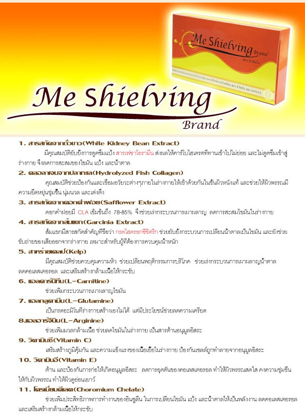 มีชิลวิ่ง (Me Shielving) ผลิตภัณฑ์เสริมอาหารลดน้ำหนักเพื่อหุ่นสวยและรูปร่างที่เพรียวงาม (900 บาท)