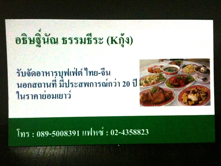 Tel. 0895008391 คุณกุ้ง รับจัดบุฟเฟ่ต์ อาหารไทย จีน ทุกระดับ คุณภาพการันตีโดยการเปิดร้านอาหารสไตล์ไทยและจีนมาเป็นเวลากว่า 10 ปี มั่นใจเรื่องการบริการและคุณภาพอาหาร และราคาที่เป็นกันเองครับ