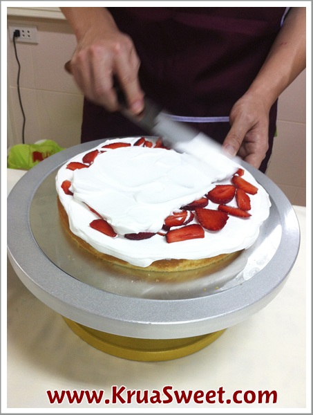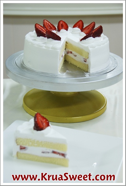 ครัวสวีทได้ปรับปรุงเนื้อเค้กจากสูตรดั้งเดิมเป็นเค้กบัตเตอร์ เป็นเค้กสปันจ์เนื้อนุ่ม เบา สอดไส้ด้วยสตรอเบอร์รี่สดและปาดหน้าเค้กด้วยครีมสดเนื้อเบา ไม่เลี่ยน สูตรเฉพาะของทางร้าน