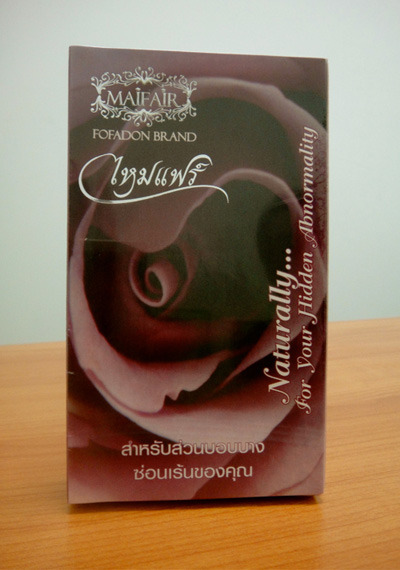 ไหมแฟร์ (Mai Fair) โฉมใหม่ คัดสรร จากสมุนไพรจีนอันทรงคุณค่ามาเป็นสูตรลับเฉพาะ ช่วยคงความสมดุลของร่างกายสตรี ราคาเต็ม 1,190 บาท แต่เราขายเพียง 500 บาทเท่านั้น คุณประโยชน์ของ ไหมแฟร์ (Mai Fair) 1.ป้องกันรักษา อาการ ช่องคลอดติดเชื้อโรค คันบริเวณอวัยวะเพศภายนอก ช่องคลอดอักเสบ (ช่องคลอดอักเสบจากเชื้อ ทรีโคโมแนด "Tritchomonad" ช่องคลอดอักเสบ จากเชื้อรา ) โรคอักเสบหลังการมีเพศสัมพันธ์ อักเสบที่เกิดจากช่องคลอดติดเชื้อง่ายและสารเหลวมีกลิ่นเหม็น ตกขาวธรรมดาและมีเลือดปน ระดูขาวมากเกินไป และการติดเชื้อจากเชื้อโรคอื่นๆ 2. ช่องคลอด ช่วยให้ช่องคลอดกระชับตัว เพิ่มความชุ่มชื้น กระตุ้นให้ช่องคลอดอ่อนนุ่ม ลื่น กล้ามเนื้อกระชับ บรรเทาอาการช่องคลอดแห้ง 3. มดลูก บรรเทาอาการมดลูกเคลื่อนต่ำ มดลูกหดตัวไม่ดี ป้องกันปากมดลูกเน่าเปื่อย การติดเชื้อที่โพลงกระดูกเชิงกราน และป้องกันมะเร็งปากมดลูก 4. รังไข่ บรรเทาประจำเดือนมาไม่ปกติ ลดการปวดประจำเดือน การหย่อนสมรรถภาพของรังไข่ โรคมีลูกยาก ป้องกันมะเร็งรังไข่ 5. ต่อมน้ำนม กระตุ้นต่อมน้ำนม ฮอร์โมน ทำให้เต้านมกระชับ ป้องกันเต้านมคล้อยห้อยหลังคลอดลูก 6. ต่อมหมวกไต กระตุ้น ต่อมหมวกไต สร้างสมรรถนะให้อวัยวะมีการหมุนเวียนสร้างเซลล์ใหม่ที่ดี ป้องกันสิว ฝ้า ป้องกันเมลานิน ( Melanin ) ตกตะกอน ช่วยให้ทนทานต่อแสงแดด 7. เต้านม กระตุ้นประสิทธิภาพของต่อมน้ำนม ป้องกันการเสื่อม และยืดช่วงการเข้าสู่วัยทอง เพิ่มประสิทธิภาพให้ต่อมน้ำนม เสริมระบบภูมิป้องกันโรค 8.ต่อมไขมัน ปรับ ความสมดุลของต่อมไขมัน บรรเทาอาการไขมันมากเกินไป จนทำให้เกิดสิว ตุ่มผิวหนัง และบรรเทาอาการผิวหยาบแห้ง ดำคล้ำ ที่เกิดจากไขมันขาดสมดุล ทำให้ผิวหนังละเอียดอ่อน นุ่ม ลื่น 9. ต่อมพิทูอิทารรี่ ปรับสมดุลให้ต่อมใต้สมองทำการปรับความสมดุลของฮอร์โมนระบบต่อมทางเพศ ป้องกันไม่ให้เกิดความเครียด ช่วยให้จิตใจปกติ ราคา 500.00 บาท