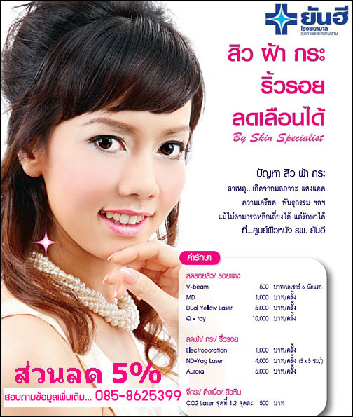 ++ ร.พ.ยันฮี มอบส่วนลด รักษาปัญหาสิว ฝ้า กระ สาเหตุ...เกิดจากมลภาวะ แสงแดด ความเครียด พันธุกรรม ฯลฯ แม้ไม่สามารถหลีกเลี่ยงได้ แต่รักษาได้ ++