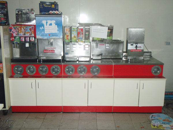 ขายชุด เค้าเตอร์ขายเครื่องดื่ม แบบร้านมินิมาร์ทชื่อดัง สภาพ 90% ผิวหน้าเค้าเตอร์ทำจากเสตนเลส แถมช่องเสียบแก้วของอเมริกา 8 ช่อง (ของใหม่อันละ 1800 บาท) ไม่รวมอุปกรณ์อย่างอื่นบนเค้าเตอร์ ราคารวมทำมา 55000 ต้องการขายราคาถูก