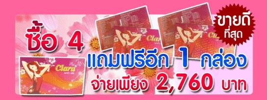 คลาร่า พลัส เพิ่มส่วนประกอบสำคัญเพิ่มวิตามินซีมาเป็น คลาร่าพลัส ส่วนประกอบสำคัญตัวอื่นที่ดีอยู่แล้วคงไว้เช่นเดิม ราคาปกติ 690 บาท โปรโมชั่นสุดคุ้ม ซื้อคลาร่าพลัส 4 กล่อง เเถมฟรี 1 กล่อง ราคา 2,760 บาท ราคา 15 กล่อง 6200 บาท
