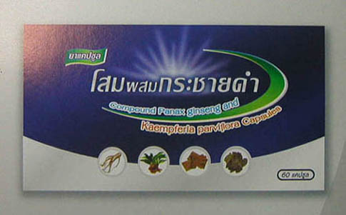 บำรุงร่างกาย และบรรเทาอาการปวดเมื่อยตามร่างกาย แคปซูล ขนาดรับประทาน : ครั้งละ 1-2 แคปซูล วันละ 2 ครั้ง ก่อนอาหาร ช่วยให้ท่านชายมีสุขภาพแข็งแรง ด้วยตัวยาสมุนไพร อาทิเช่น กำลังหนุมาน กำลังวัวเถลิง กำลังเสือโคร่งฯลฯ ที่จะเสริมสมรรถภาพ ทั้งยังแก้อาการ ปวดเมื่อย ดูแลเส้นเอ็น ช่วยกระดูกทับเส้นได้ดี และช่วยให้ไตทำงานอย่างเป็นปกติ แถมยังเสริมสมรรถภาพทางเพศให้กับคุณผู้ชายได้เป็นอย่างดี ท่านสุภาพสตรีทานเพื่อบำรุงไต