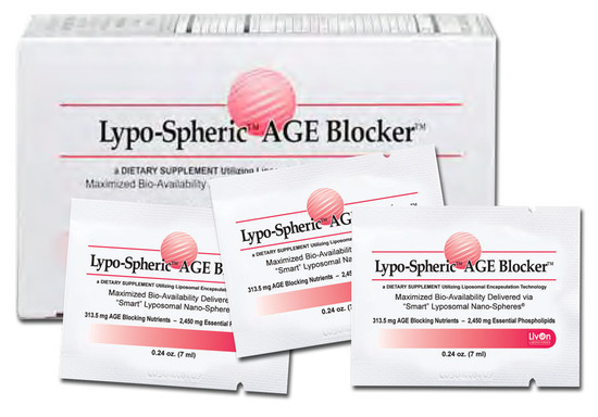 ผลิตภัณฑ์ Lypo - Spheric ทุกตัวผลิตที่ USA ด้วยนาโนเทคโนโลยี ดังนั้นจึงสามารถดูดซึม ได้เกือบ 100% ใน Lypo - Spheric™AGE Blocker ™ ช่วย Anti - Aging ต่อต้านความชรา, เสริมการเผาผลาญอาหาร - มีวิตามิน B -, เกลือแร่, สารต้านอนุมูลอิสระ Antioxidant และสารสกัดจากอบเชย, AGE Blocker ได้รับการกำหนดเพื่อช่วยให้ : สนับสนุนและเพิ่มอัตราการเผาผลาญอาหาร รักษาสุขภาพผิวและกล้ามเนื้อ เพิ่มประสิทธิภาพการทำงานระบบภูมิคุ้มกันของร่างกายและระบบประสาท ส่งเสริมการเจริญเติบโตของเซลล์และการแบ่งรวมทั้งที่ของเซลล์เม็ดเลือดแดง ย้อนกลับและป้องกันผลกระทบที่เกิดจากการ glycation ช่วย ลดเลือนริ้วรอยแห่งวัย ชะลอความแก่ ลดริ้วรอย ตัวนี้ทานแล้วทำให้ริ้วรอยที่มีตื้นขึ้นอย่างเห็นได้ นอกจากนี้ยังมีคุณสมบัติอื่นๆ ที่มีประโยชน์ต่อร่างกาย เช่น สามารถ จำกัด และป้องกันการถูกทำลายของโมเลกุล ในขณะเดียวกันก็เพิ่มความสามรถของวิตามิน B , เกลือแร่, สารต้านอนุมูลอิสระและสารสกัดจากอบเชยเพื่อปรับปรุงการเผาผลาญกลูโคสมีความ ต้านทานต่ออินซูลินลดลงและเพิ่มพลังงาน . www.easyddd.com/product-th-950117-4979184-Lypo+Spheric+AGE+Blocker+กลูต้าเจล+กลูต้าไธโอนน้ำในรูปแบบพิเศษ+Lyposome+1กล่อง+30ซอง.html