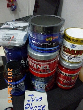 ของจาก bodybuilding โดยตรงครับ รับรองของแท้แน่นอน ที่มีตอนนี้ -Dymatize Recoup ขนาด 10 servings รสแตงโม มี 5 กระปุก ขายกระปุกละ 400 บาท -BSN AminoX ขนาด 10 servings รสฟรุตพั๊นช มี 2 กระปุก ขายกระปุกละ 400 บาท -BodyBuilding.com AminoRecovery ขนาด 10 servings รสฟรุตพั๊นช มี 1 กระปุก ขายกระปุกละ 400 บาท -BodyBuilding.com BCAA powder 500 กรัม ขายกระปุกละ 1,200 บาท -BSN N.O. Xplode ขนาด 10 servings รสฟรุตพั๊นช มี 6 กระปุก ขายกระปุกละ 400 บาท -BPI 1.M.R ขนาด 10 servings รสBlue Raspberry มี 3 กระปุก ขายกระปุกละ 400 บาท -Flex Sport Elastic Wraps สายรัดข้อมือสีขาว 1 คู่ ราคา 450 บาท -Gaspari SuperPumpMax ขนาด 10 servings รสส้ม ขายกระปุกละ 400 บาท