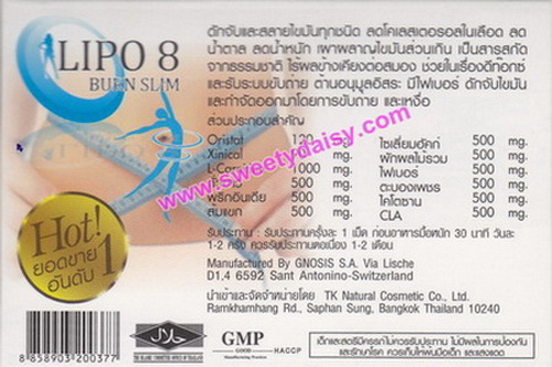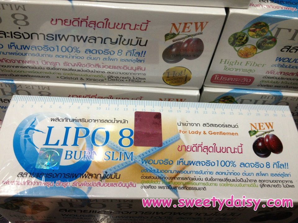 จำหน่ายปลีกส่ง ผลิตภัณฑ์ LIPO 8 BURN SLIM High Fiber นำเข้าจากสวิสเซอร์แลนด์ ตัวนี้มีส่วนผสมของใยอาหารเยอะมาก ขจัดไขมันออกมาพร้อมกับการขับถ่าย ลดน้ำหนักได้มากสุดถึง 8 กก./เดือน