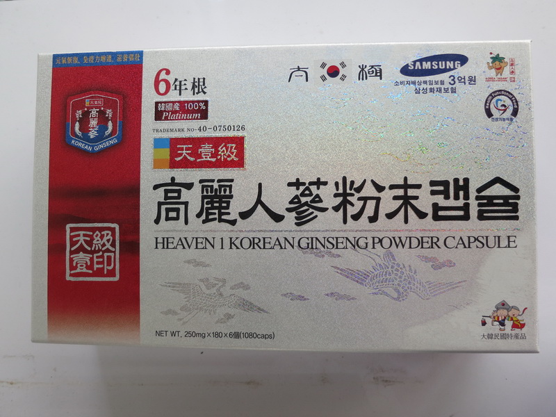 เป็นโสมเกาหลีที่สกัดจากโสมอายุ 6ปี ที่มีคุณภาพสูงสุด และเป็นโสมต้นใหญ่ มีสารอาหารมากกว่าโสมต้นปกติ ( มี 38 ชนิด ปกติมี 35 ชนิด) โดยสกัดเป็นผง บรรจุใส่ในแคปซูล ทำให้รับประทานสะดวกโสมเกาหลีชนิดที่ซื้อมาเป็นชนิด Platinum มีความเข้มข้นมากกว่าชนิด gold สองเท่า โดยรับประทานเพียงวันละ 1 แคปซูล (ปกติ วันละ 2 เม็ด)
