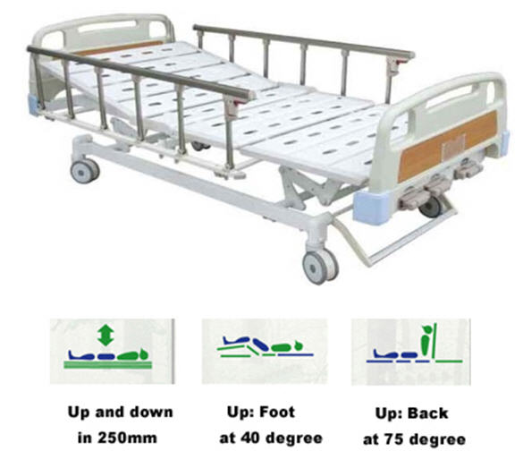 - การทำงาน ยกหลัง 75 องศา , ยกขา 45 องศา , สูง/ต่ำ 250 มม.