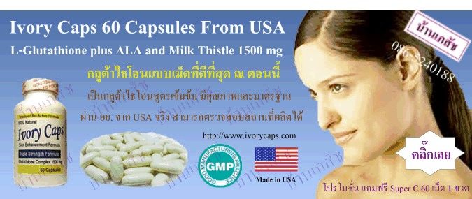 * Ivory Caps1500 mg กลูต้าไธโอนแบบเม็ดที่ดีที่สุด ราคา 1450 บาท แถมฟรี Super C เม็ดต่อเม็ด