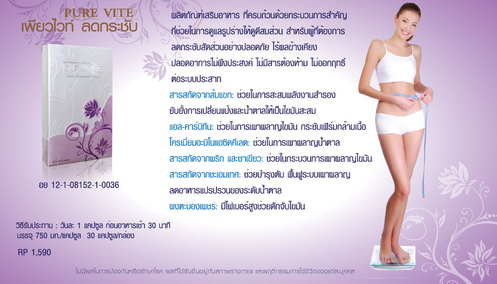 PUREVITE,( เพียวไวท์)กระชับสัดส่วน, ลดความอ้วน, ลดน้ำหนัก, ลดกระชับสัดส่วน, ดักจับไขมัน