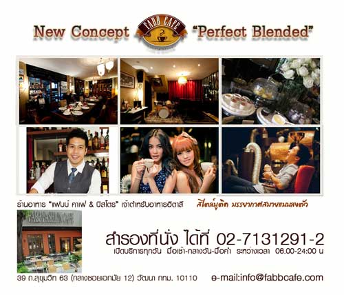 “แฟบบ์ คาเฟ่ &บิสโตร” ร้านหรูกลางเมืองแห่งนี้ตอบสนองอารมณ์แบบ Perfect Blended โดยให้ความรู้สึกอบอุ่นเหมือนอยู่ในบ้าน แต่มีความสุขสบายไม่ต่างจากโรงแรมระดับ 5 ดาว เพราะ แฟบบ์ คาเฟ่ &บิสโตร มีทุกอย่างที่ห้องอาหารในโรงแรมมี นอกจากนั้น แฟบบ์ คาเฟ่ &บิสโตร ก็ พร้อมจะให้บริการทั้งด้านการจัดเลี้ยง งานแถลงเปิดตัวสินค้า งานแต่งงาน งานวันเกิด งาน อีเวนท์โอกาสพิเศษต่างๆ ที่ต้องการบรรยากาศเก๋ๆที่แตกต่าง ซึ่งเปิดทำการทุกวัน ตั้งแต่มื้อเช้าไปจนถึงค่ำคืนแห่งความโรแมนติค นอกจากนั้น ยังมี พนักงานบริการรับจอดรถ (Valet Parking)เช่นเดียวกับโรงแรมหรูอีกด้วย