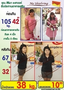 เป็นวิธีลดน้ำหนักที่รับประกันผลภายใน 30 วันด้วยระบบดูแลลูกค้าเป็นการส่วนตัว ไม่ว่าคุณจะลองมากี่วิธี เรากล้าบอกว่านี่เป็นวิธีสุดท้ายที่ได้ผลกับคุณ มีชิลวิ่ง (Me Shielving) เป็นวิธีลดน้ำหนัก, วิธีลดความอ้วนที่รับรองโดย สำนักงานคณะกรรมการอาหารและยา (อย.) เลขที่ อย.12-1-08152-1-0007