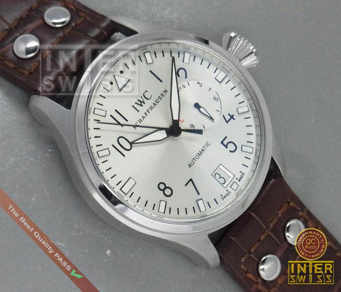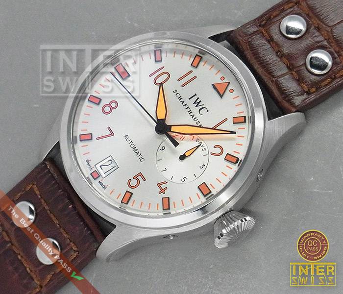 IWC BIG PILOT หน้าปัดเงินตัดส้ม สายหนังแท้เกรด OEM (CASE7750) 46 mm