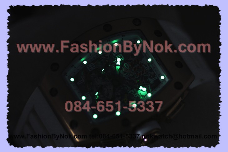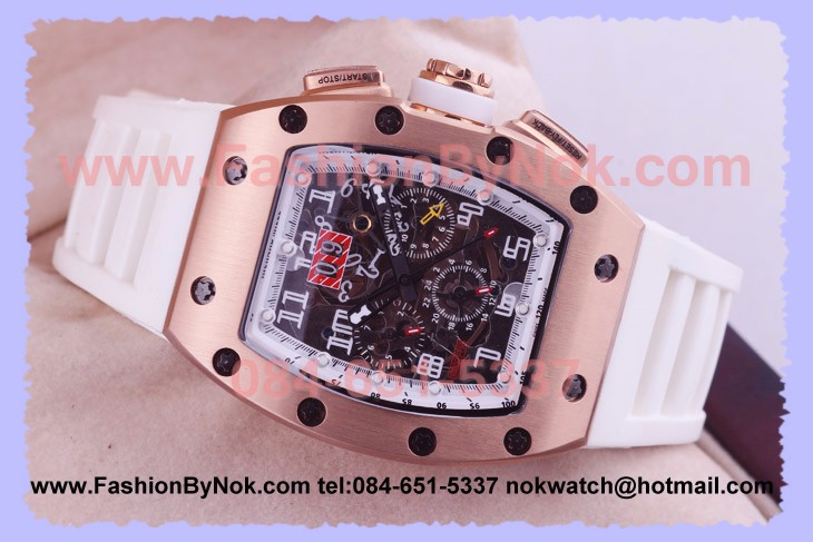 RICHARD MILLE Skeleton Edition,White(50x39.5 mm)Pink Gold เคสเกรดมิเรอร์สวิส ผลิตจำนวนจำกัด xxx/500 "รหัสไม่ซ้ำกัน" ทองชมพู หนา 5 ไมครอน เท่ห์มากๆจร้า รับประกันตัวเครื่อง 1 ปี คลิกเลยจร้า * รุ่นแนะนำให้เคสเกรดมิเรอร์สวิส ผลิตจำนวนจำกัด xxx/500 "รหัสไม่ซ้ำกัน" ทองชมพู หนา 5 ไมครอน เท่ห์มากๆจร้า - ขนาดตัวเรือน King Size 50x39.5 mm.งานบอดี้สวิส ถอดบล๊อกจากของแท้ - หน้าปัดกระจกใสโชว์กลไกการทำงาน มีขอบสีขาว,แดง,เขียว,ดำ - กระจก Sapphire กันรอยขีดข่วน กระจกทรงโค้งเข้ารูปกรอบ - ตัวเรือนชุบทอง Pink Gold หนา 5 Micron ยากต่อการซีดจาง สายยางซิลโคนเกรด A ข้อล๊อคแบบเข็มขัด - ฝาหลังโชว์กลไกทำงาน ยึดน๊อตใส่ซีลกันน้ำ เม็ดมะยมทำเหมือนแท้ - เครื่อง Asia Movement ระบบ Automatic ขึ้นลานด้วยโรเตอร์และเฟืองเม็ดมะยม ใช้งานได้ทุกฟังก์ชั่น - แสดงวันที่ตำแหน่ง 12 นาฬิกา, วันสัปดาห์ตำแหน่ง 9 นาฬิกา, เวลา12-24 ชม.ที่ตำแหน่ง 6 นาฬิกา, เดือนที่ตำแหน่ง 3 นาฬิกา http://www.fashionbynok.com/store/product/view/RICHARD_MILLE_Skeleton_EditionWhite50x39.5_mmPink_Gold_เคสเกรดมิเรอร์ส-23558111-th.html http://www.fashionbynok.com/ หน้าร้านนกค่ะ **************************************************** เงื่อนไขการรับประกันสินค้า www.fashionbynok.com
