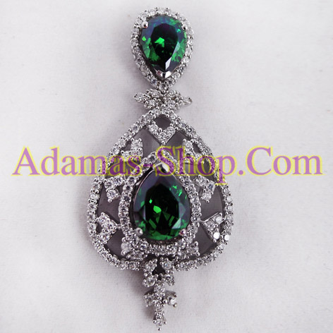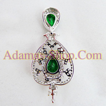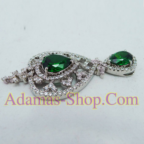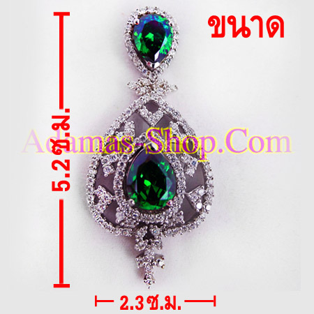 ขายจี้สร้อยคอเงินแท้ 925 ทรงหัวใจระย้า ประดับเพชรสวิสสีเขียวมรกตและขาว ส่ง EMS ฟรี
